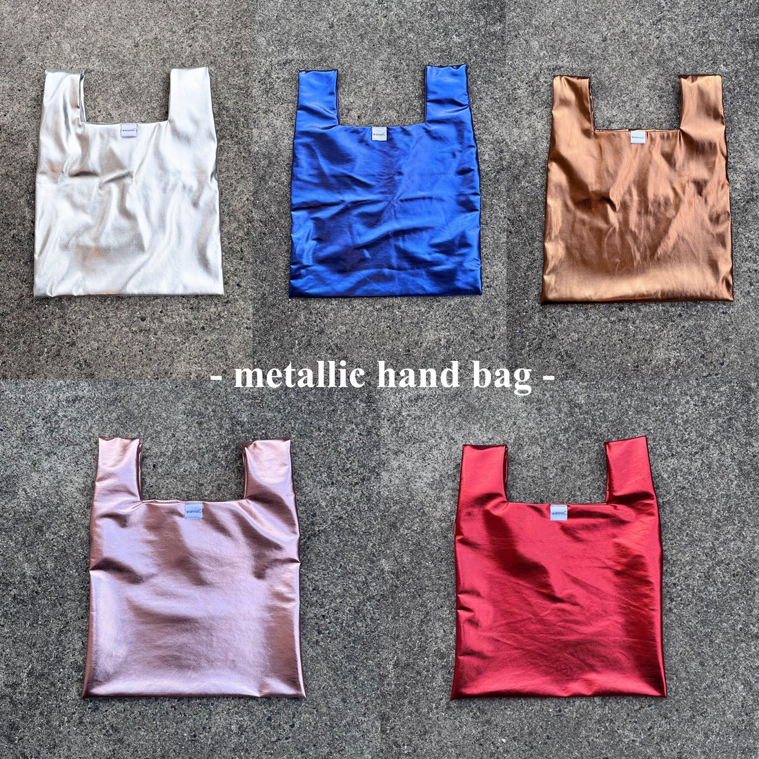 ◾️ Design 人気商品ハンドバッグシリーズから新色が登場。 ブルーのメタリックがエモーショナルな印象。 リラックス感と高級感のある素材と形を表現しました。 コンビニバッグの形をした使いやすいスタイル。 ペットボトルやお弁当も入る大きさで、少し買い物したい時も活躍します。 荷物が多い方にも安心で、大きすぎないサイズ感。 メタリックなブルーは、冬の重たい印象にワンポイントとなる存在です。 ワンランク上のコーディネートに仕上がります。 グレーなどブルーベースのアイテムが多い方におすすめです。 Color: Blue / Silver / Bronze fabric : PU 100 SIZEhand bag : 約縦35cm×横39cm×持ち手12cm