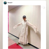 design : 自由にアレンジできるリボンと前のヨーク切り替えが特徴。 リボンは前でも後ろでも結ぶことができます。 少し袖長めのノースリーブなので、腕を綺麗に見せてくれます。 ウエスト切り替えがゴムなので幅広くフィット感も。 スカートはアコーディオンプリーツ加工を施し、玉虫色がより華やかな見え方に。 見え隠れするオレンジや水色の表情がさりげなく、上品な素材。 結婚式や顔合わせ、パーティ、ステージなどフォーマルなシチュエーションにぴったりな一枚です。 fabric : W 74 % P 26 % 水色とオレンジの糸でシャンブレーの効いた珍しいボイル素材。 サマーウール70%配合でドライタッチで通年快適に着用できます。 見る角度によって色が違って見えるユニークなファブリック。 color. Blue×Orange size. ONE SIZE(肩幅44 ウエスト60-90 総丈110-120) ※総丈はウエスト位置で調節可能です。 model. 170cm (画像最後):160cm attention. ドライクリーニング可 ※デリケートな素材なのでお取り扱いにご注意ください。